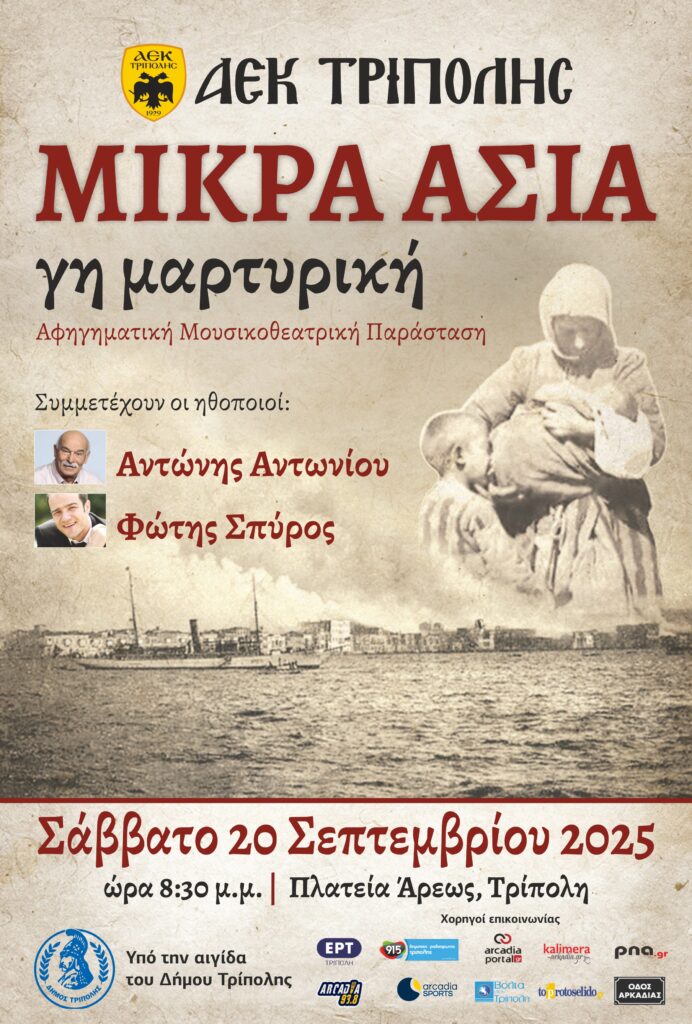 Στα πλαίσια των φετινών δράσεων μνήμης για την Μικρασιατική καταστροφή, το ΔΣ της ΑΕΚ ΤΡΙΠΟΛΗΣ αποφάσισε, ως ελάχιστο φόρο τιμής στους ξεριζωμένους Έλληνες που έφτασαν από τα παράλια της Μικράς Ασίας και κατοίκισαν στην πρωτεύουσα της Αρκαδίας, στο κέντρο της Πελοποννήσου, αναζητώντας ένα νέο τόπο δημιουργίας και κατοίκησεις, να διοργανώσει την αφηγηματική μουσικοθεατρική παράσταση με τίτλο: