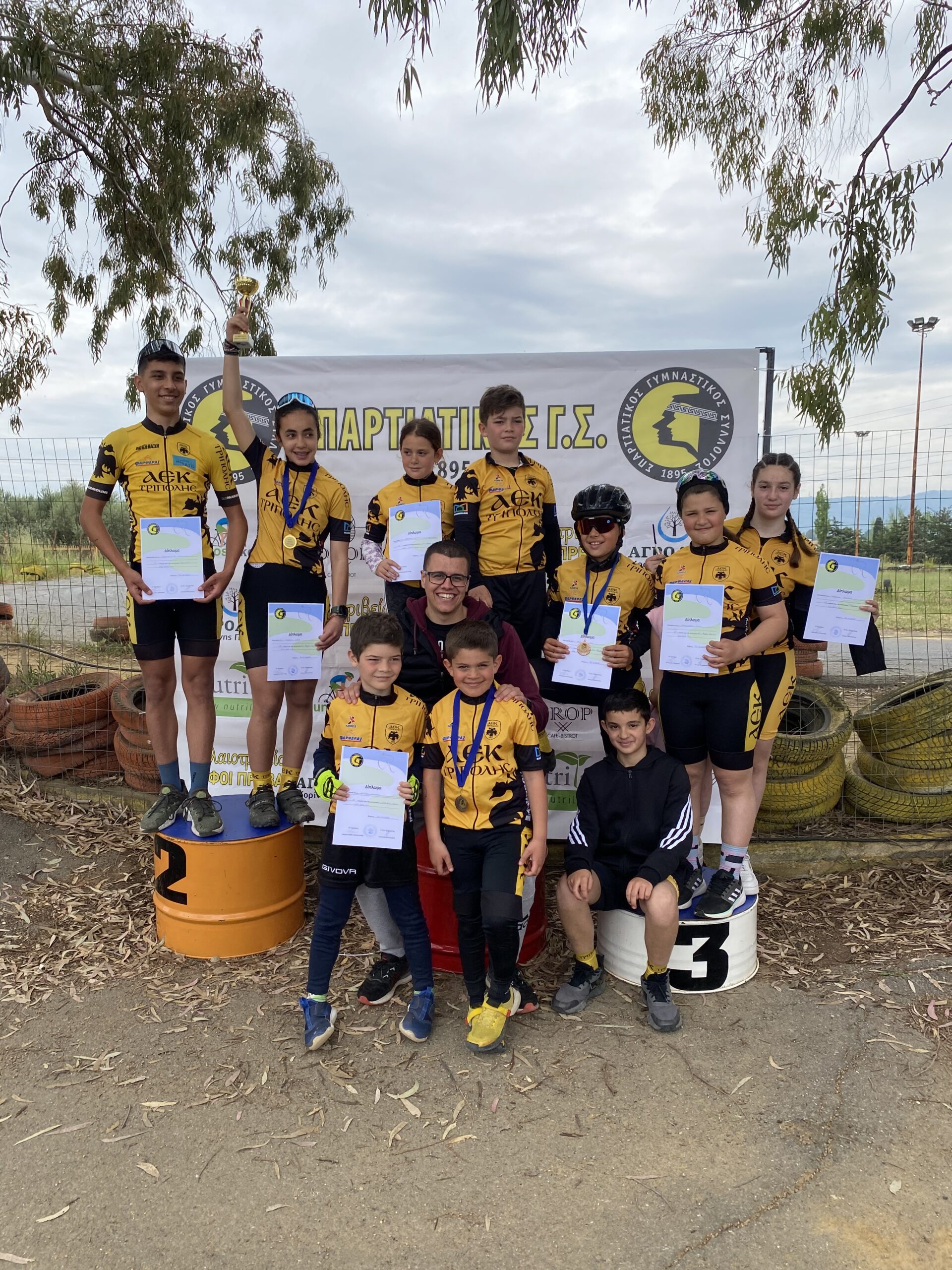 O Πρόεδρος του Δ.Σ της AEK TPIΠOΛHΣ, κος Π. Γ. Bαλασόπουλος ,ο υπεύθυνος του τμήματος καθώς και ομόφωνα το Διοικητικό Συμβούλιο εκφράζουν τα θερμά τους συγχαρητήρια στους αθλητές του ποδηλατικού τμήματος για τις επιτυχίες στον αγώνα ΜΤΒ που πραγματοποιήθηκε στη Σπάρτη 30/4.